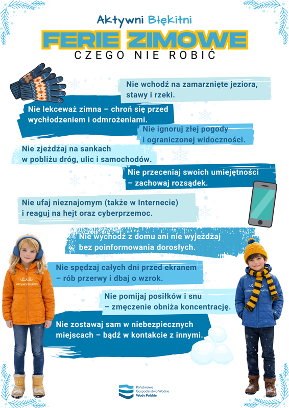 Zbliżające się ferie zimowe to czas radości, zabawy i odpoczynku, ale również moment, w którym dzieci mogą być narażone na różne zagrożenia. Dlatego podczas lekcji „Bezpieczne ferie” z Aktywni Błękitni rozmawialiśmy o tym, jak mądrze i bezpiecznie spędzać zimowy czas wolny. Wykorzystaliśmy specjalnie przygotowany pakiet materiałów edukacyjnych, które w przystępny i ciekawy sposób pomogły zrozumieć możliwe zagrożenia oraz nauczyć odpowiedzialnych zachowań podczas zimowego wypoczynku. Mamy nadzieję, że zdobyta wiedza pomoże wszystkim spędzić ferie bezpiecznie, radośnie i bez przykrych niespodzianek.