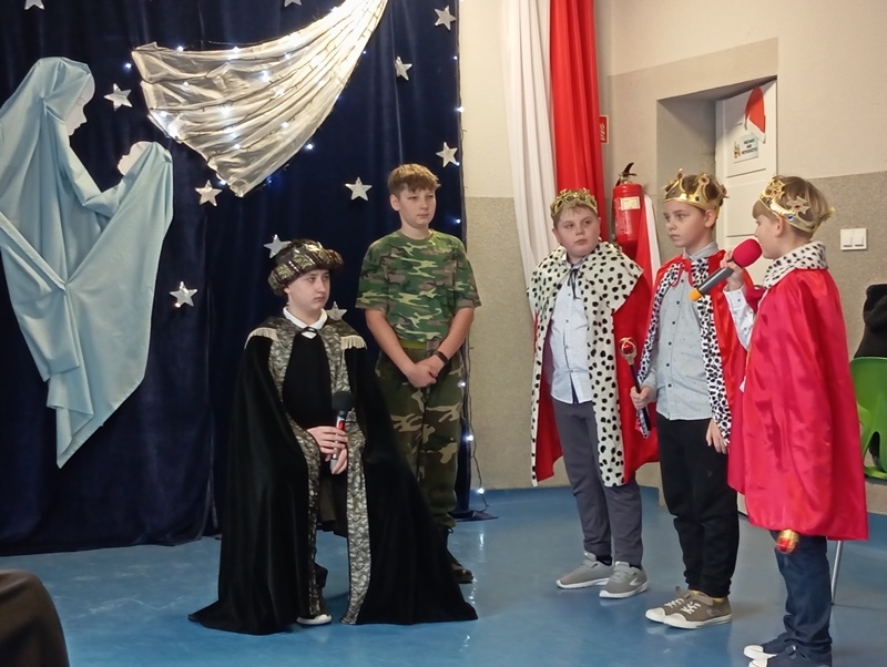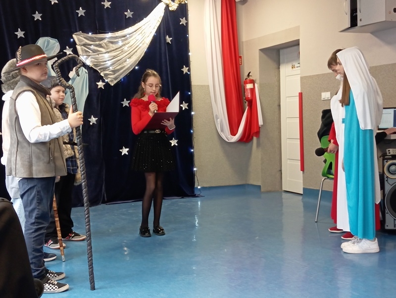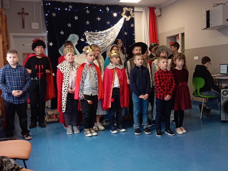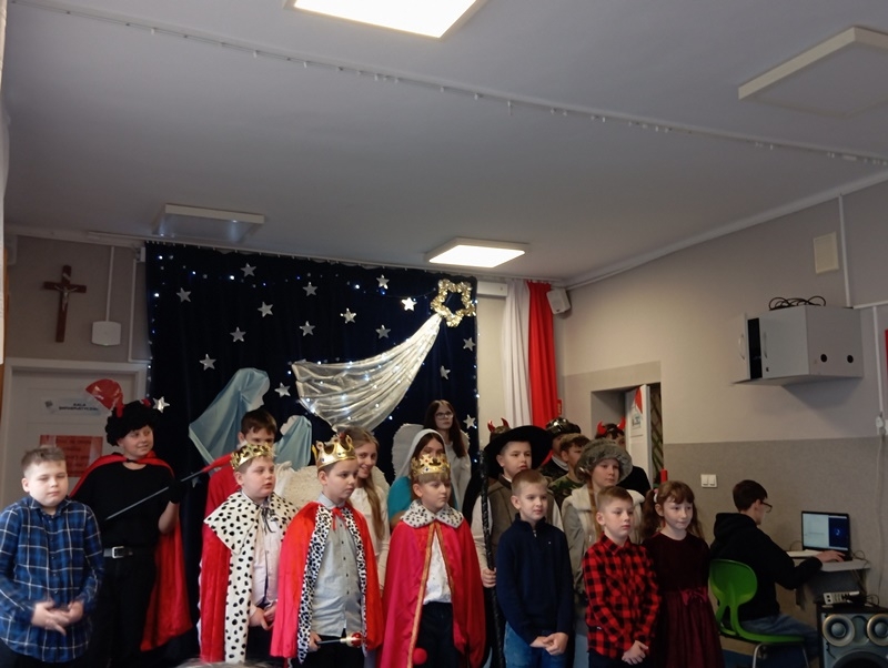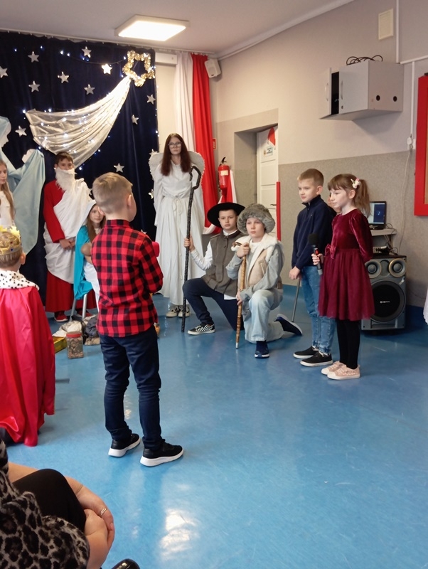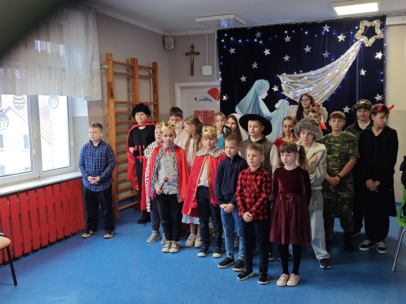 Uczniowie wcielili się w role pasterzy, Trzech Króli oraz króla Heroda, prezentując historię narodzin Jezusa. Mali aktorzy z wielkim zaangażowaniem i starannością odgrywali swoje role, a barwne stroje i scenografia dodały przedstawieniu uroku.