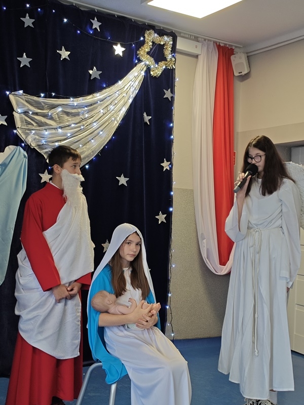 W dniu 19 grudnia 2025 w naszej szkole odbyły się tradycyjne jasełka bożonarodzeniowe przygotowane przez uczniów. Uroczystość wprowadziła wszystkich w wyjątkowy, świąteczny nastrój.