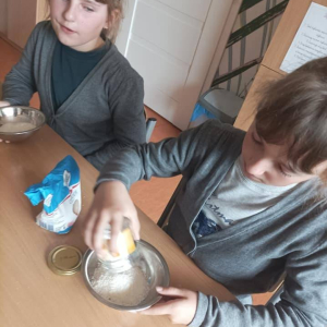Z okazji Dnia Mamy uczniowie przygotowali peeling kokosowy do ciała.