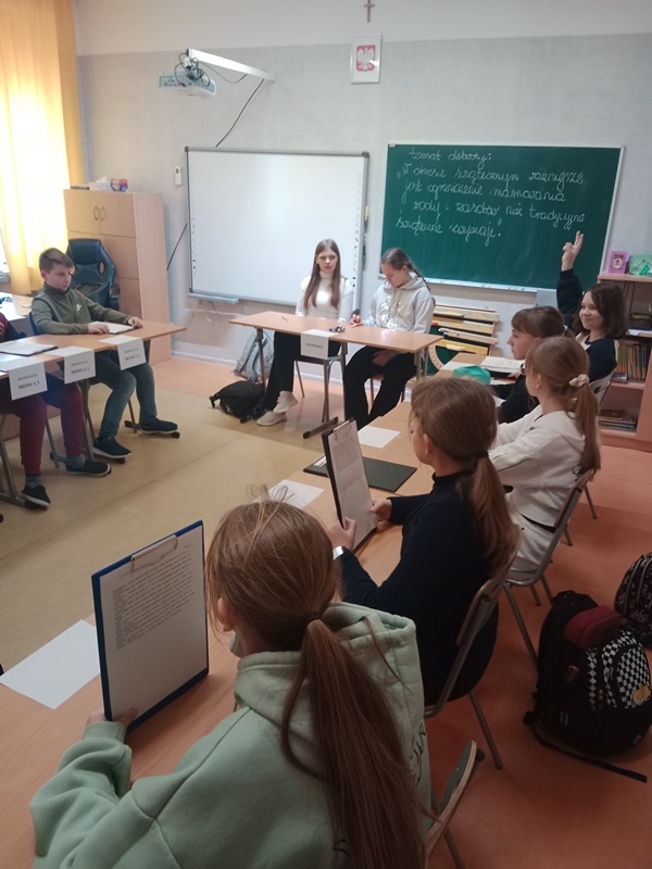 Podczas debaty uczniowie przedstawiali argumenty zarówno strony propozycji, jak i opozycji, wykazując się dużą dojrzałością, umiejętnością logicznego myślenia oraz kulturą dyskusji.