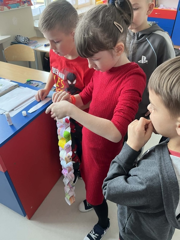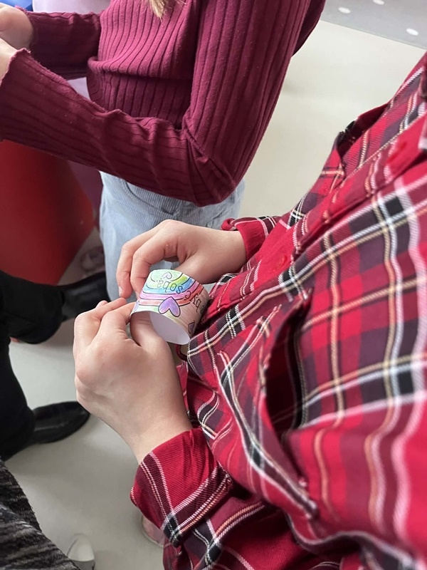 i kreatywnością łączyły kolorowe serduszka oraz papierowe łańcuszki walentynkowe, którymi następnie udekorowano m.in. skrzynkę walentynkową. Wspólna praca była doskonałą okazją do rozwijania zdolności manualnych, współpracy oraz budowania życzliwej atmosfery.