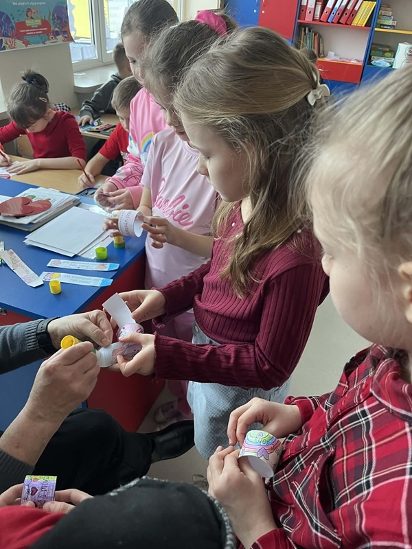 W tym wyjątkowym czasie uczniowie klas 1–3 wzięli również udział w warsztatach plastycznych o tematyce walentynkowej. Dzieci z ogromnym zaangażowaniem