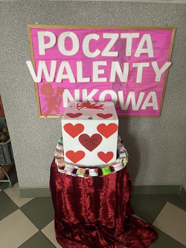 Z okazji Walentynek 13 lutego w naszej szkole została zorganizowana Poczta Walentynkowa, która cieszyła się ogromnym zainteresowaniem wśród uczniów. Specjalnie przygotowana skrzynka umożliwiała wrzucanie kartek i miłych wiadomości dla koleżanek, kolegów oraz nauczycieli. W dniu 14 lutego walentynkowi listonosze dostarczyli wszystkie kartki do adresatów, wywołując wiele uśmiechów i radości.