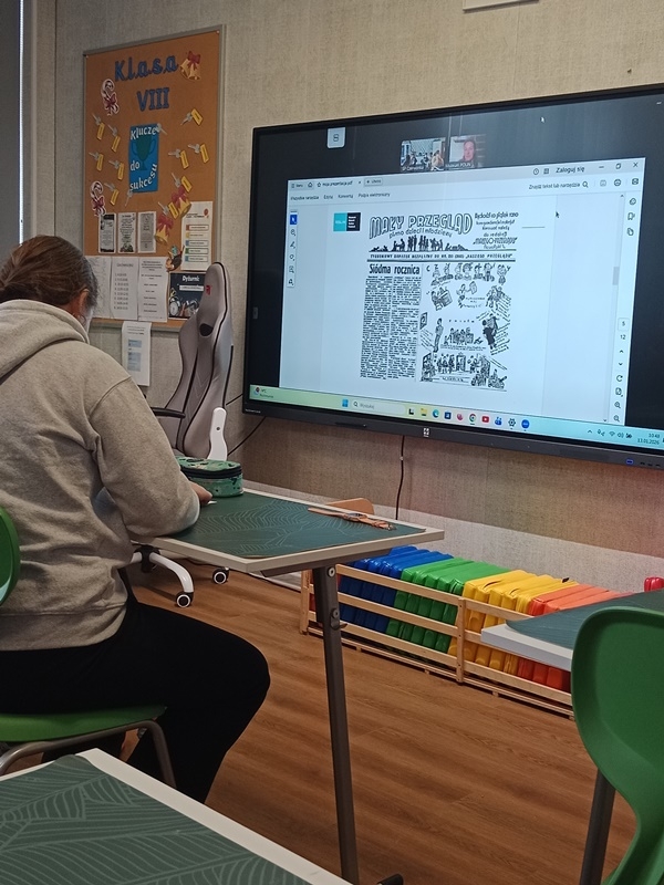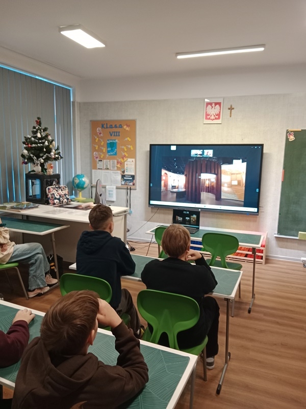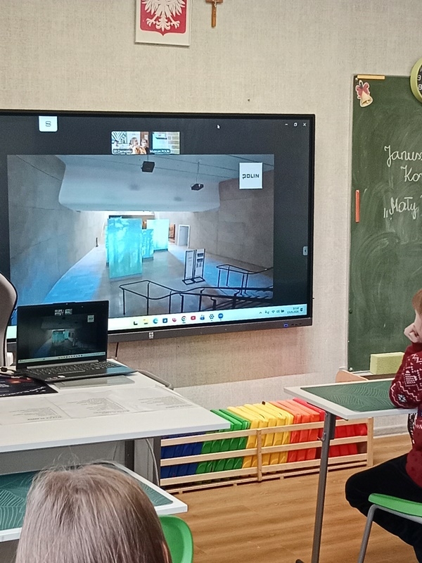 W styczniu uczniowie klas IV–VIII uczestniczyli w zajęciach online organizowanych przez Muzeum Historii Żydów Polskich POLIN. Dzięki wykorzystaniu komputera uczniowie mogli wirtualnie przenieść się do jednego z najciekawszych muzeów w Warszawie. Warsztaty online miały formę krótkich, intensywnych spotkań, które angażowały uczniów i uczennice w różnorodne aktywności. Podczas spotkań wykorzystywano nowoczesne technologie – uczestnicy oglądali fragmenty filmów i podcastów, rozwiązywali quizy oraz dyskutowali w mniejszych grupach. Zajęcia prowadzone były przez doświadczonych edukatorów muzeum, specjalizujących się w edukacji zdalnej.